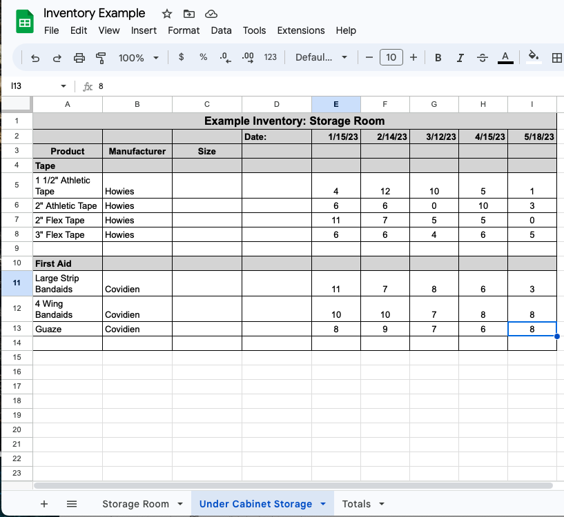 Managing inventory is important. It’s also challenging to do if you aren’t working for a large-scale organization that has barcode scanners and large databases that track all of your products. If you’re an athletic trainer, own a gym/clinic, or work in a health care setting you may not have access to these automated inventory systems. If you manage inventory where you work or for your own business, you may benefit from some tips I’ve learned when I have managed inventory at various places I’ve worked.